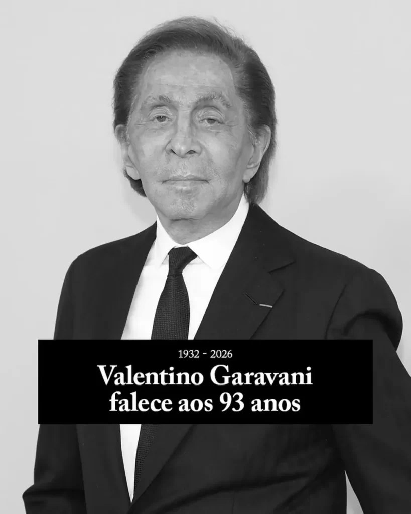Valentino Garavani morreu nesta segunda-feira aos 93 anos, em sua residência em Roma. O funeral acontecerá na sexta-feira na Basílica de Santa Maria degli Angeli e dei Martiri, também na cidade.